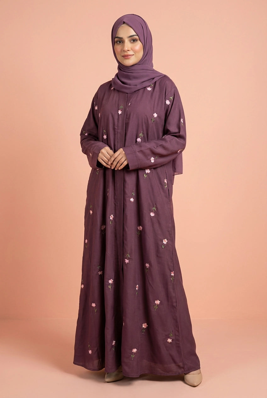 Product Overview: Rosy night abaya combines modesty and comfort for a graceful everyday look.